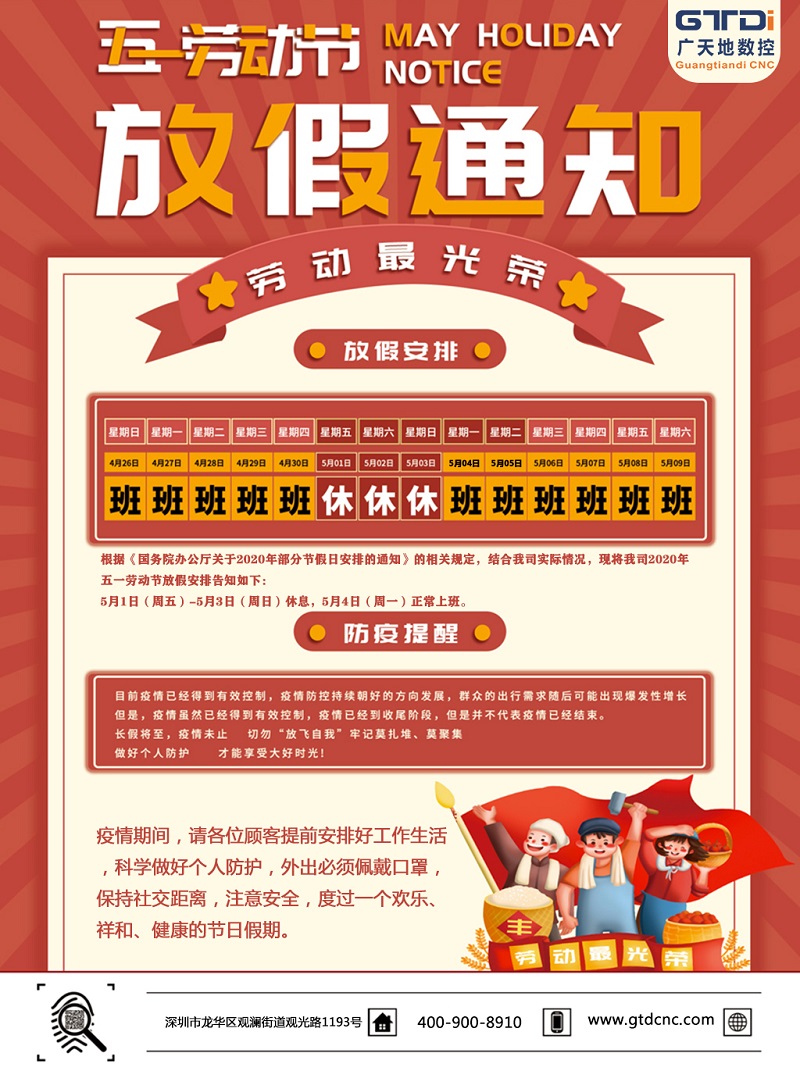 2020年乐鱼leyu数控公司五一劳动节放假时间安排