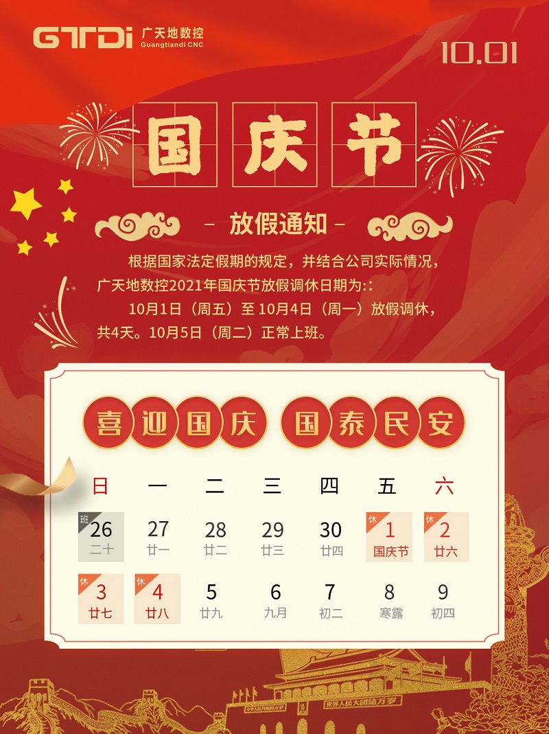 乐鱼leyu数控2021年国庆节放假时间安排通知